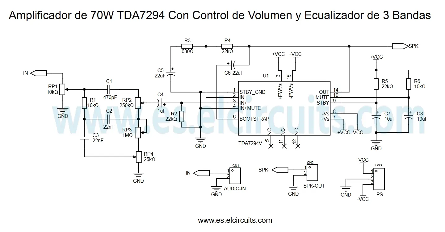 Amplificador 70W TDA7294 Hi-Fi con Ecualizador de 3 Bandas: Proyecto profesional con PCB incluido