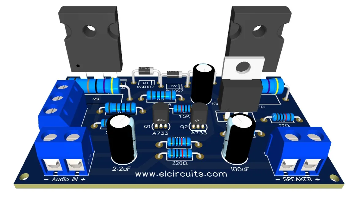 Amplificador de Potencia de Audio 100W con TIP142 y TIP147 y PCB