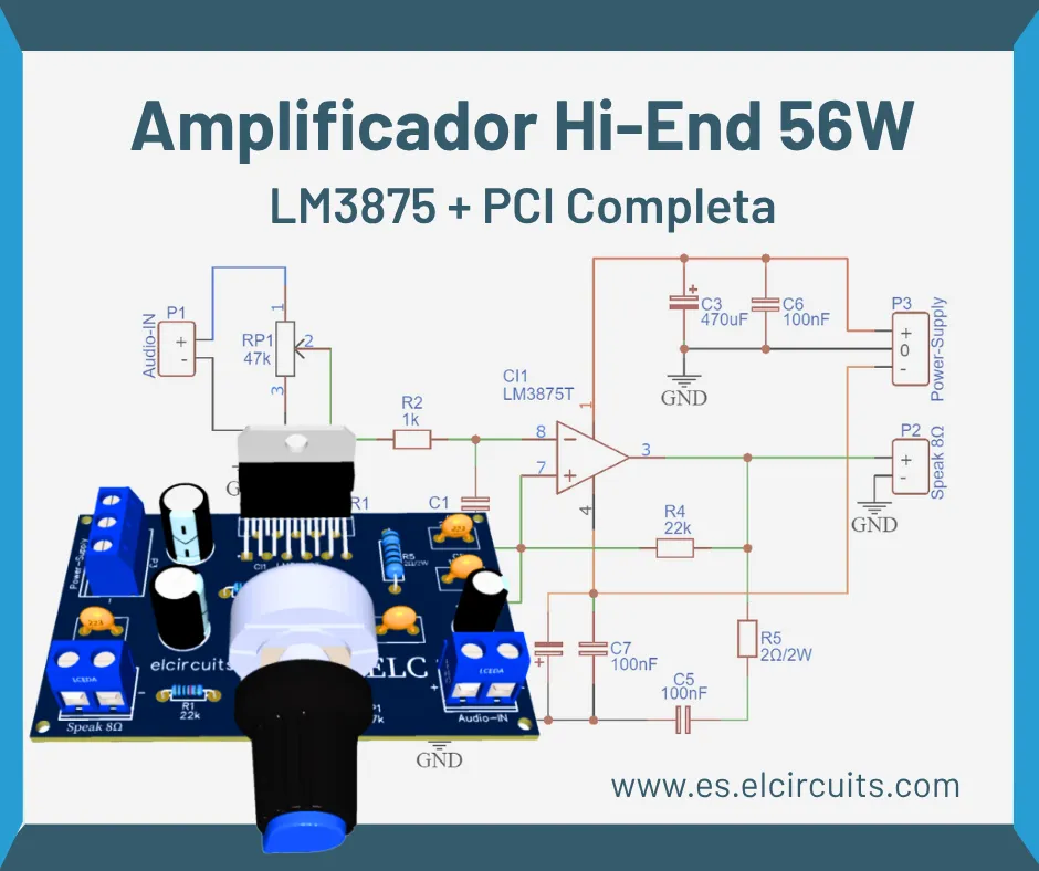 Amplificador Hi-End de 56W RMS con LM3875 – ¡Arma el Tuyo con PCB Completa!