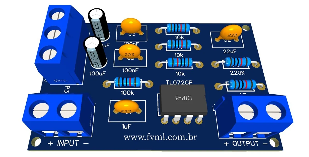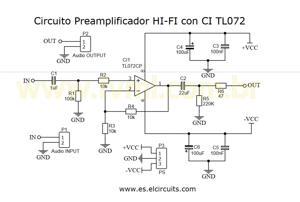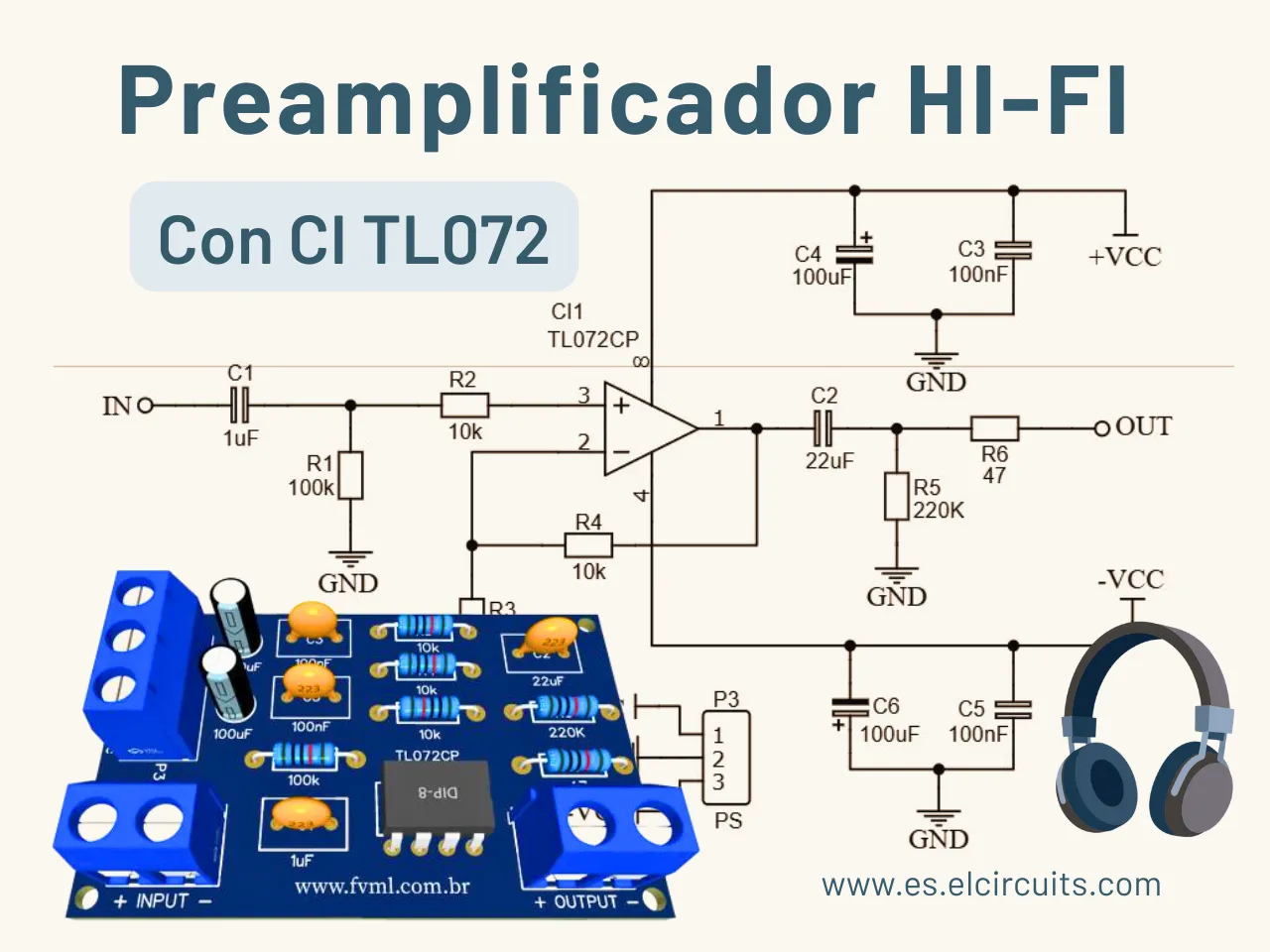 Este circuito es sorprendentemente simple de montar, pero el secreto para obtener resultados excepcionales radica en la calidad de los componentes. El Circuito Integrado TL072 debe ser de procedencia confiable, ya que las versiones de baja calidad comprometerán significativamente el rendimiento de tu preamplificador.