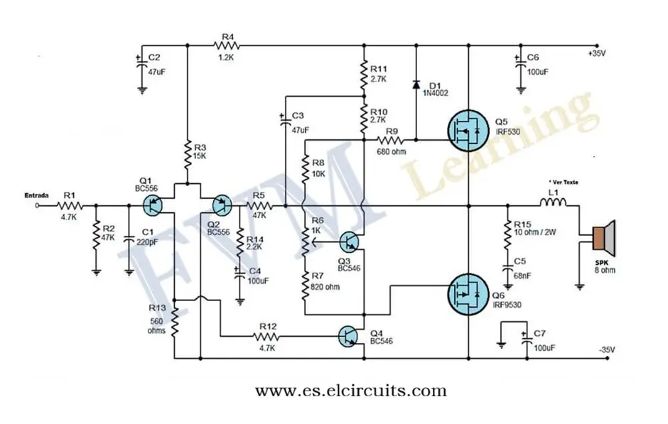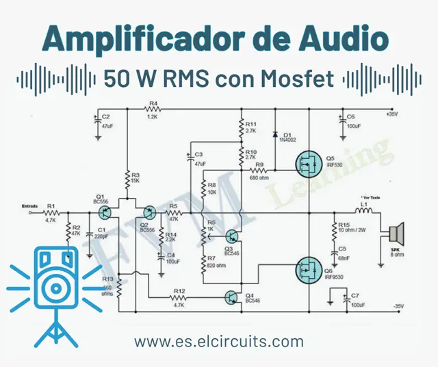 Hoy vamos a sumergirnos en el fascinante mundo de los amplificadores de audio! Prepárate para montar un Amplificador de Audio simple, pero de excelente calidad con 2 Transistores Mosfets de salida, que te sorprenderá con sus 50W RMS en un altavoz de 8 ohmios.